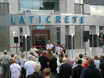 In addition, Bethany First Selectperson, Derrylyn Gorski, praised LATICRETE in her opening remarks, describing the firm and its personnel as “wonderful corporate citizens.” Joan McDonald, Commissioner of the State of Connecticut’s Department of Economic and Community Development, also addressed the crowd, emphasizing the presence of the LATICRETE® System in signature building projects around the world. She also drew a parallel between Dr Rothberg’s inventions that changed to tile industry, with other famous Connecticut inventers including Charles Goodyear and Samuel Colt
