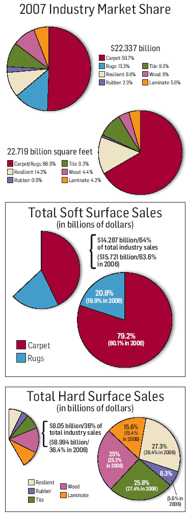 | | 2007 Statistical data highlighting total market share, soft surface sales, and hard surface sales in total dollars spent. |