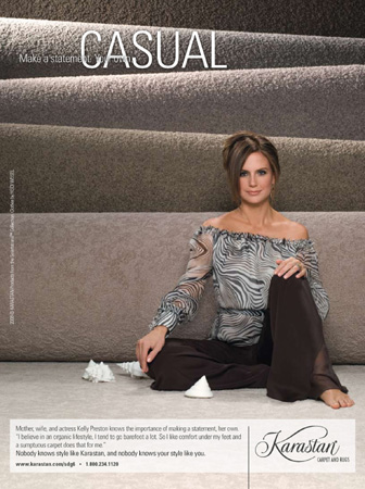 “One of the primary goals of our “Make A Statement” campaign is to carry Kelly’s consumer connection through to our retailers,” adds David Duncan, vice president of residential marketing. “Kelly’s distinctive style, her devotion to family and career, her lifelong love of design and her dedication to environmental causes strike a cord with consumers. These shared values strengthen consumers’ appreciation of the Karastan brand and build upon the relationship they have with our retailers.”