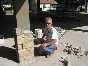 July 17, 2008: LATICRETE, a global leader in the manufacturing of innovative systems for the installation of tile and stone, generously donated LATAPOXY® 310 Rapid Stone Adhesive and the LATAPOXY 310 Cordless Mixer for a new open air stone pavilion at the Disabled Veterans Camp on Big Marine Lake in Marine on St. Croix, Minnesota. The Bricklayers and Allied Craftworkers Local Union 1 of Minnesota/North Dakota volunteered their services and installed 18 columns with stone veneers and caps utilizing LATAPOXY 310 Stone Adhesive in a rapid setting format. The new 2,400 square foot stone pavilion sits on the 75-acre Disabled Veterans Camp designed to provide facilities and opportunities for recreation, rest and well-being for all woman and men who have served or are serving in the Armed Forces of the United States of America.