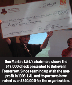 BALTIMORE—For 22 years The L&L Co. has held a golf tournament to not only thank customers and suppliers but to give back to the community. Since 1996 it has teamed up with Believe In Tomorrow National Children’s Foundation.