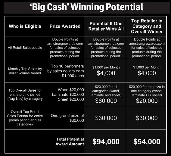 Flooring America in Honolulu. Both credited their local Armstrong reps for suggesting they contend for the huge cash prizes, but the underlying reason was the success they have had selling Armstrong-branded products.