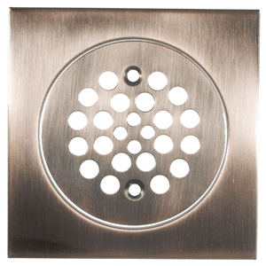 Since all Tile Redi shower pans allow ceramic, glass or stone tiles to be adhered directly to the surface, each drain is manufactured in a square form, rather than a circle, to make the drain easier to tile around. The designer drain plates are available in 18 variations of the standard base colors, including Black, Brass, Bronze, Chrome, Copper, Nickel and White, in order to match the existing hardware in the bathroom.