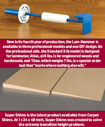 John Maddy, sales manager of Carpet Shims, which just introduced its Super Shims to help solve extreme transition height problems, agreed that as word spreads about how good a product is, more installers start gravitating to it.