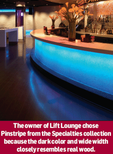DALLAS—When the city’s posh Lift Lounge needed to replace the existing hardwood floor that was used and abused by the dance club that formerly occupied the 3,000-square-foot space, flooring contractor Dobson Floors knew it needed to install a product that not only could withstand heavy traffic but also something with style befitting a “place to be” nightspot. The choice was easy:
