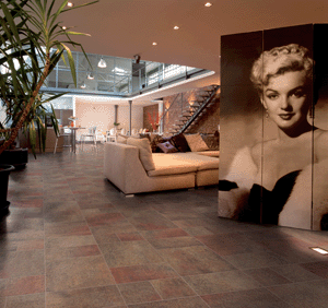 The MetroLife collection from Mediterranea is produced in five different sizes, complete with bullnose accessories and two different styles of mesh-backed mosaics mounted on 12” x 12” sheets. The MetroLife collection will offer traditional square size mosaics, but will also offer a new, 1” x 2” rectangular mosaic format in a broken joint brick pattern. This highly artistic, stained concrete-look collection is produced in 24” x 24”, 12” x 24”, 18” x 18”, 12” x 12” and 6” x 6” sizes, and in four vibrant colors: Macchiato Brown, Cinnabar Red, Melted Bronze and Graphite Charcoal.