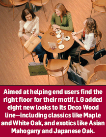 LG FloorsLooking at overall industry trends as well as the category, Harry Brownett, vice president of sales and marketing, said LG is highlighting eco-friendly and fashion-forward practices and products. “While some styles such as wood and stone tend to be constants on the product scene, interior design trends are finding green living and environmentally healthy choices at the forefront. Genuine green products have become a mainstream staple of the building industry.”