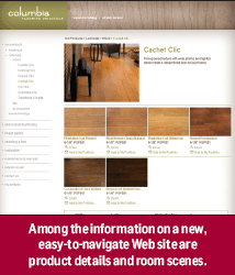 Columbia’s updated brand graphics have been incorporated into impactful display graphics and literature for an updated and cohesive selling message. This includes new product cartons, slip sheets, strap-back sample boards, product labels and product literature. A new, easy-to-navigate Web site offers all the information retailers and their customers need—such as product details, a complete library of inspiration room images and a search function based on color, plank width and edge type.