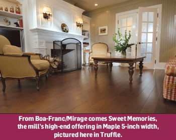 Boa-Franc/MirageSweet Memories is available in engineered maple 5-inch width, with a cashmere low luster finish in three colors (Toffee, Truffle and Earl Grey).