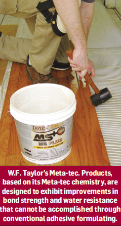 W.F. Taylor“Our top selling products are Wood Flooring Adhesive and Premium Grade commercial carpet adhesives,” said Barry Wright, executive vice president. “W.F. Taylor has distinguished itself by developing a new-patented chemistry we call Meta-tec. Products based on our Meta-tec chemistry exhibit improvements in bond strength and water resistance that cannot be accomplished through conventional adhesive formulating techniques.