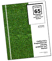 The “Prop 65 & The Artificial Turf Market” handbook is a survival guide for companies doing business in the state of California – many who were caught unaware of these highly precautionary policies are now under lawsuits or notices of violation by California State Attorney General, Jerry Brown’s offices and the Center for Environmental Health (CEH). Your company could be next on the list; find out how to avoid it!