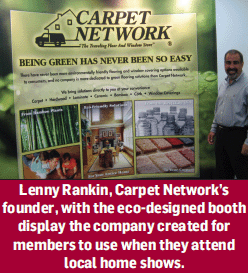 Carpet Network even created a special backdrop display for members to use when participating in local events. Vanderspek called it “beautiful. I will certainly take advantage of using it when I do my next show. Green is a very big deal in this part of the country. Our local paper even has a section to run green products.”