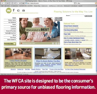 In 2006, WFCA, together with premier Web site design studio Bridgeway Interactive, hatched a plan to create a turnkey operation that would enhance overall industry awareness, education and ultimately sales. As part of the initiative, WFCA and Bridgeway formed a new company called Creating Your Space (CYS). Together the partners built a consumer Web site, www.wfca.org, which provides unbiased information about every type of floor covering. Upon launch, the Web site took off with consumers as the primary source for flooring information, including category details, the pros and cons, virtual room design tools and tips from celebrity interior designers. Embraced by audiences, wfca.org recently received the prestigious W3 Silver Award for outstanding Web site design.