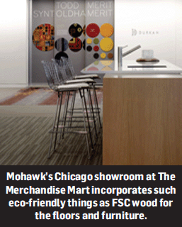 CHICAGO—Mohawk’s commitment to going green extends throughout the company as evidenced by its commercial division’s Chicago showroom achieving gold-level certification from the U.S. Green Building Council’s (USGBC) Leadership in Energy and Environmental Design (LEED) rating system for commercial interiors.