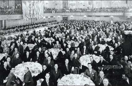 | | The Chicago Floor Covering Association was chartered in January of 1946 by 55 men, many of whom were recently discharged from military service following World War II. Most were retailers and Chicago, with its humongous market at the legendary Merchandise Mart, was the epicenter of the industry, so the group became one of the oldest, largest and most vociferous in the business. This photo was taken at the association’s First Annual Banquet at the Palmer House in Chicago on Jan. 8, 1947. In those days, there was unbridled enthusiasm and camaraderie and members responded. At that first banquet, there were almost a thousand people in attendance. Note the gallery, and the double dais alone seated nearly 100. The borrowed photo will be returned to Northern Flooring in Palatine, Ill., and once again occupy a special place on the company’s wall—framed. |