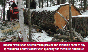 Beginning Dec. 15, importers will be required to provide a basic declaration to accompany every shipment of plants or plant products. This addresses illegal logging by requiring the scientific name of any species used, country of harvest, quantity and measure, and value. If either the specific country or species are unknown for a given shipment, the law allows declarations to contain the name of each likely species of plant, and/or each possible country of origin.