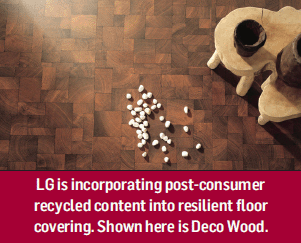 LG Floors, however, has discovered several ways to not only incorporate true pre-consumer (a.k.a. post-industrial) content into its product but—for the first time in the industry—LG is able to incorporate its own post-consumer recycled content into resilient floor covering.