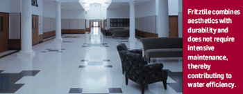 Fritztile was environmentally conscious long before it became trendy. The product offers a 20-year wear warranty and, with proper maintenance, will last the life of a building. As well, it does not require intensive maintenance, thereby contributing to water efficiency.