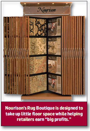 According to David Forman Nourison’s marketing director, “Even before market conditions turned, Nourison was aggressively pursuing ways to help stores increase profits. The Rug Boutique is the perfect solution. It addresses the retailer’s main issue of limited floor space and the customer’s need to be able to experience the product and see it in a natural setting. The display also presents runners and shapes, something that traditional rug rack displays can’t do.”