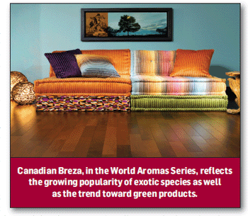 • Canadian Breza, the first offering in the new World Aromas Series, a local species that offers an exotic look via a special process Mirage developed that brings out natural pigments. “It is environmentally sound because you don’t have the carbon footprint.”