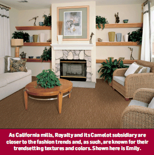 Retailers agree. “Royalty is a class act,” said Jodi Cross, co-owner of B&B Mill Sales, Anaheim, Calif. “Its carpets are all top quality with great styles and they have a great California-based color line so when our customers come into our store, Royalty sells itself. Royalty also takes care of any problems that may arise in a timely manner, and the consumer is always satisfied with the outcome.”