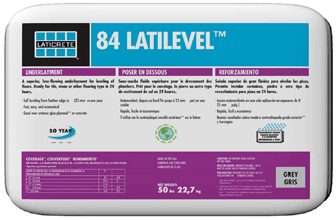 Designed as a cost-effective self-leveling underlayment that saves contractors time and money by providing a durable, smooth surface with minimal labor and installation time, LATICRETE 84 LatiLevel will not shrink or spall resulting in fewer call backs to the job site. Backed by the LATICRETE 10 Year System Warranty* for peace of mind, LATICRETE 84 LatiLevel provides the installer with an economical and easy to use product with a long heal time for smoothing and adjusting underlayment installations.