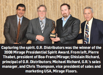 The winner for 2008 was G.R. Distributors of Canada. Along with posting the largest percentage growth increase in 2008, Thabet noted G.R.’s ongoing focus on Mirage during the year was critical to its outstanding performance.