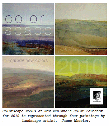 The 2010 forecast, named Colorscape—Natural New Colors for Natural New Carpets, was prepared by Joanna Ramsden, creative manager for Wools of New Zealand. Ramsden is based in Ilkley, West Yorkshire and is an experienced colorist who sits on a number of influential international forecasting panels.