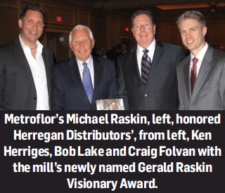 LAS VEGAS—Herregan Distributors of Eagan, Minn., was recently recognized by resilient tile supplier Metroflor with its Gerald Raskin Visionary Award. The honor came as part of Metroflor’s annual Distributor Awards presentation during Surfaces ’09 here.