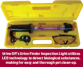 And, this year, Urine Off’s Revolutionary Urine Finder Inspection Light hit the marketplace. Using LED technology, the product is specially calibrated to detect biological substances such as urine, semen and other bodily fluids. “Using the LED Urine Finder Light, urine can be identified then eradicated with Urine Off products, leaving a clean, fresh smelling environment,” Greiner said.