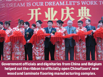 With key government officials from the region, as well as from its sister province in West Flanders, Belgium, among the 450 people in attendance, Thomas Baert, Chinafloors’ president and co-owner, called the $25 million investment a dream, saying, “This factory is about people,” and dedicated the opening to the company’s 1,600 employees. “The goal has always been to build a ‘dream team,’” he said. That is, everyone having the same dream—achieving the same targets—and working hard to achieve them.”