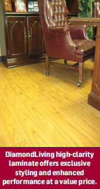 Kelli Waits, marketing director, and Penny Nichols, vice president of domestic operations, pointed to a number of “significant features and benefits” which distinguish DiamondLiving high-gloss, high-clarity laminate from others in the marketplace: clear cell technology, increased durability, exclusive cylinders, Valinge 2G lock & fold system, eco-friendly HDF core and water-resistant coated sides.
