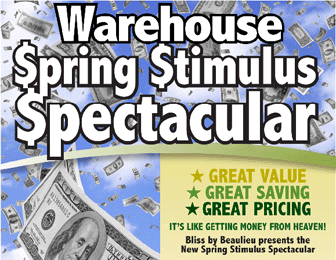 In its La Mirada, California warehouse on May 15, Bliss carpet will be featured at an “Earthquake Clearance Sale” for dealers. The company promises, appropriately, “ground shaking deals”.