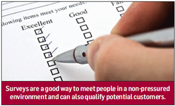 3. Conduct surveys. It is very difficult to contact new prospects when all you can think to do is ask for business. Consider conducting an information-gathering survey, which will always relate to what you offer. This is a good way of meeting people with less pressure than in a sales call. You can “qualify” the new potential customer by asking questions like whether they own a home, will they soon be in the market for flooring, what might they be looking for, what their budget may be, etc. At the end of the survey, ask if you can call sometime in the future to see if you can provide service. These surveys are best conducted by telephone to gather information, however, you may have to be prepared to email your survey to busy people. If you must use email, make it clear that you would like to follow up and get clarity after you review their surveys with a “brief” call.