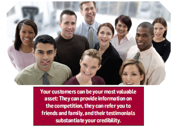 4. Keep the customer referrals coming. Make sure your salespeople get in the habit of asking customers if they have any friends or family who would like what you sell. And because customers are often reluctant to provide a friend or family member’s contact information, you have to give them an offer they can’t refuse. You might create a customer referral program in which the customer doing the referring and the person she refers receive a reward.