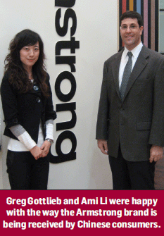 Greg Gottlieb, Armstrong’s Asia Pacific senior vice president/managing director, said the company’s strong brand name kept the mill’s spacious booth busy. “We’ve had a great deal of interest, especially from Chinese distributors and retailers who are wanting to carry our products.” He noted Armstrong “just started” penetrating the Chinese market with 25 franchised stores (Editor’s note: In China, retailers typically carry products from one manufacturer, similar to car dealerships in the U.S., and work hand-in-hand with mills in terms of store design and layout) With the current stock of retailers enjoying positive results, Gottlieb said Armstrong plans to grow its network to a couple of hundred in the medium term. “This is our first foray and, right now, it is mostly with wood and a little laminate.”