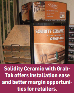 But possibly most important in today’s challenging economy is the cost advantages associated with Grab-Tak. “Without sacrificing aesthetics, we have been able to pass our cost advantages onto our customers, creating greater margin opportunities,” Raskin said. “In addition, because the adhesive is already pre-applied to the tile, there is no need to purchase glue, which amounts to around 25 cents a foot.”