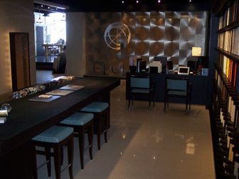 The newly designed environment provides architects and designers —alone or with their clients—a large, modern work area in an atmosphere conducive to product research. New sample boards featuring cutting-edge materials produced at their Italian and American facilities are on display, including a feature wall installation showcasing the stellar Luminar Collection.
