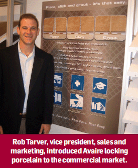 What were attendees saying about the product? According to Rob Tarver, Avaire’s vice president of sales and marketing, they were excited about the limited floor prep and tear out, “which is a big deal because there is a lot of cost when you tear out a pre-existing, old floor. Also, you’re filling landfills when you tear out an existing floor. Since everyone is moving to LEED quality and LEED points, the fact we float and can go straight over [any subfloor] with limited prep is really beneficial.”