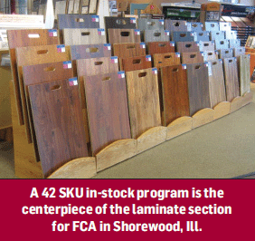 Currently FCA features an in-stock program consisting of 42 SKUs that hit at every price point, and style type—from hi-gloss to handscraped to tile and stone looks. The in-stock program is backed up by full displays of Armstrong, Mannington, Quick•Step, Mohawk, Pergo and Wilsonart.