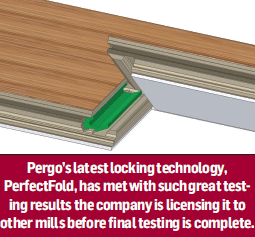 As proof of how good the technology is, he noted even though the company is still a few months away from finishing its tests, it is currently in conversations with a number of laminate—and other—flooring manufacturers with significant market share regarding licensing Pergo’s fold-down technology and PerfectFold joint.