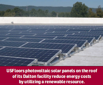 USFloors also utilizes byproducts and dust as fuel, said Gary Keeble, marketing manager. Furthermore, “Glueless cork and bamboo flooring has been installed in all our offices, lights are on a zone control system, restrooms have low-flow toilets to reduce water usage and trash is sorted and recycled.” He also cited the solar panels on the roof of the Dalton facility as one of the biggest things USFloors is doing for the environment.
