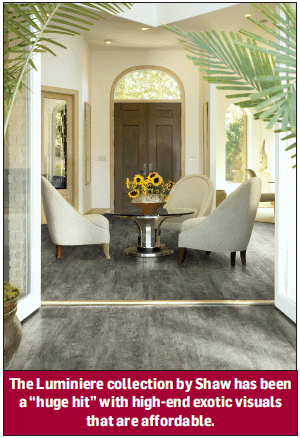 ShawEarlier this year the mill unveiled its Luminiere collection featuring an exclusive finish and “it has been a huge win for Shaw,” noted Eric Erickson, laminate product manager.