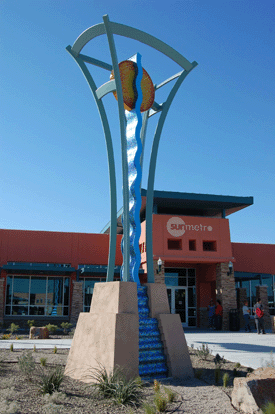October 19, 2009: LATICRETE, a global leader in the manufacturing of innovative systems for the installation of tile and stone, supplied artists Hank Saxe and Cynthia Patterson with GREENGUARD certified LATICRETE® products for a new landmark sculpture at the El Paso Sun Metro Downtown Transfer Terminal in Texas. The 25-foot tall, structural steel sculpture set on a six-foot concrete base is titled “Confluencia,” Spanish for confluence, and was commissioned by the City of El Paso Museum and Cultural Affairs Department’s Public Art Program.