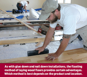 Floating aheadHardwood associations and installers noted the growing popularity of glueless flooring.
