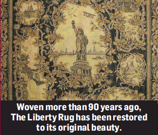 WASHINGTON—The restoration of The Liberty Rug, a historically significant carpet inspired by the initial floodlighting ceremony at the Statue of Liberty on Dec. 2, 1916, at which President Woodrow Wilson officiated, has been completed Restoration by Costikyan.