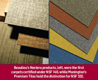 “For the first time we have an industry consensus standard,” said James Lesslie, president of Beaulieu Commercial, which became the first mill to have products certified to the standard. “It will be easier for customers to make comparisons of the environmental products vs. claims of being green. From a sustainability standpoint, NSF 140 is one of the more important initiatives for the floor covering industry in that it can be used to compare products.”