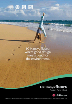 LG Hausys floors, the resilient floor covering division of LG Hausys America, Inc., has introduced a new collateral marketing and sales tool in the form of a full-color brochure highlighting in detail its environmental initiatives and the many benefits of specifying its commercial resilient flooring on projects seeking LEED certification. LG Hausys floors’ new brochure is printed on paper that has been certified by both the Forest Stewardship Council and the Rainforest Alliance for containing a minimum 10-percent post-consumer recycled content, while being elementally chlorine-free and carbon-neutral. This new brochure is available for free to all distribution partners or any party interested in LG Hausys floors’ collection of resilient flooring.