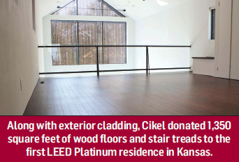 In keeping with its long-standing dedication to corporate and social responsibility, Cikel America recently donated an impressive 6,000 board-feet (22,000 lineal feet) of its beautiful exotic Brazilian Cumaru hardwood for graduate-level architecture students building the first LEED for Homes Platinum level residence in the state of Kansas.