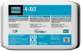 LATICRETE 4-XLT multi-use adhesive mortar represents the first product developed utilizing the new LATICRETE Water Dispersion Technology platform, which enables installers to control the consistency of the mortar dependent on the needs of each specific application. In addition, LATICRETE 4-XLT is also the first product launch incorporated with LATICRETE DUST LOCK™ Technology. This unique manufacturing method introduced by LATICRETE dramatically reduces particle dust when mixing or transporting LATICRETE 4-XLT for cleaner job-sites and warehouses.